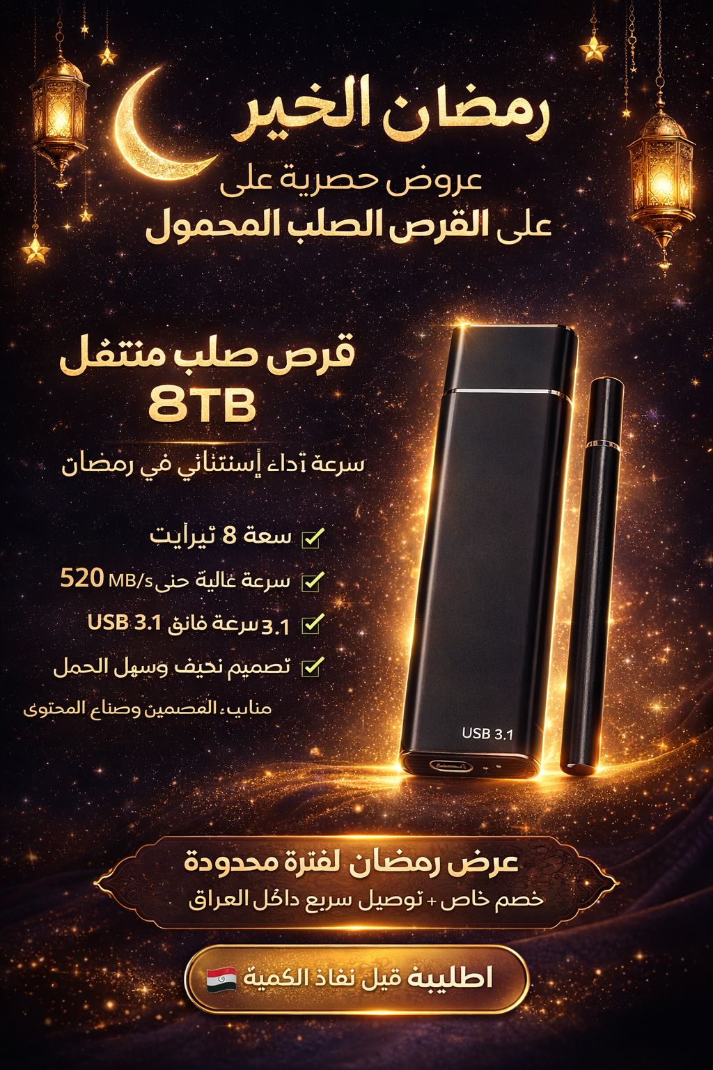 هارد SSD محمول 8 تيرابايت – سرعة USB 3.1 Type-C وأداء فائق بحجم صغير